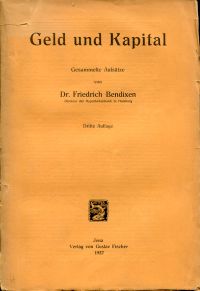 Bendixen, Friedrich: Geld und Kapital. Gesammelte Aufsätze. 3. Aufl. Jena: Gustav Fischer 1922. Gr.-8°. IV, 222 S. Brosch. (Einband mit kleinem Einriss; Seiten unbeschnitten; Rücken leicht befleckt; gut erhalten)