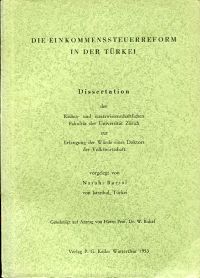 Bursal, Nasuhi: Die Einkommenssteuerreform in der Türkei. Winterthur: P.G. Keller 1953. 8°. XIV, 217 S., 5 Tabellen, broschiert (Einband mit leichten Gebrauchsspuren; Papierbedingt leicht gebräunt; gut erhalten) (=Dissertation Zürich 1952)