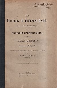 Wäber, P.: Die Pertinenz im modernen Rechte. mit besonderer Berücksichtigung des bernischen Civilgesetzbuches. Bern: Stämpfli 1899. 8°. 187 S. Broschiert (Besitzervermerk auf Umschlag; neue Rücken; Umschlag angestaubt; Papier altersbedingt leicht gebräunt; sonst altersgemäss gut erhalten) Text in Fraktur.