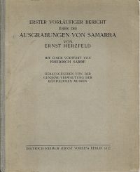Herzfeld, Ernst: Erster vorläufiger Bericht über die Ausgrabungen von Samarra. Berlin: Dietrich Reimer, Ernst Vohsen 1912. Lex.-8°. 49 S. 21 Abb. 15 Taf. davon 2 architektonische Ausfaltpläne. Halbleinen (Vorsatz oben rechts Besitzerstempel; altersgemäss leicht gebräunt; Einband etwas angestaubt; Kapitale und Kanten kaum berieben; Ecken bestossen)