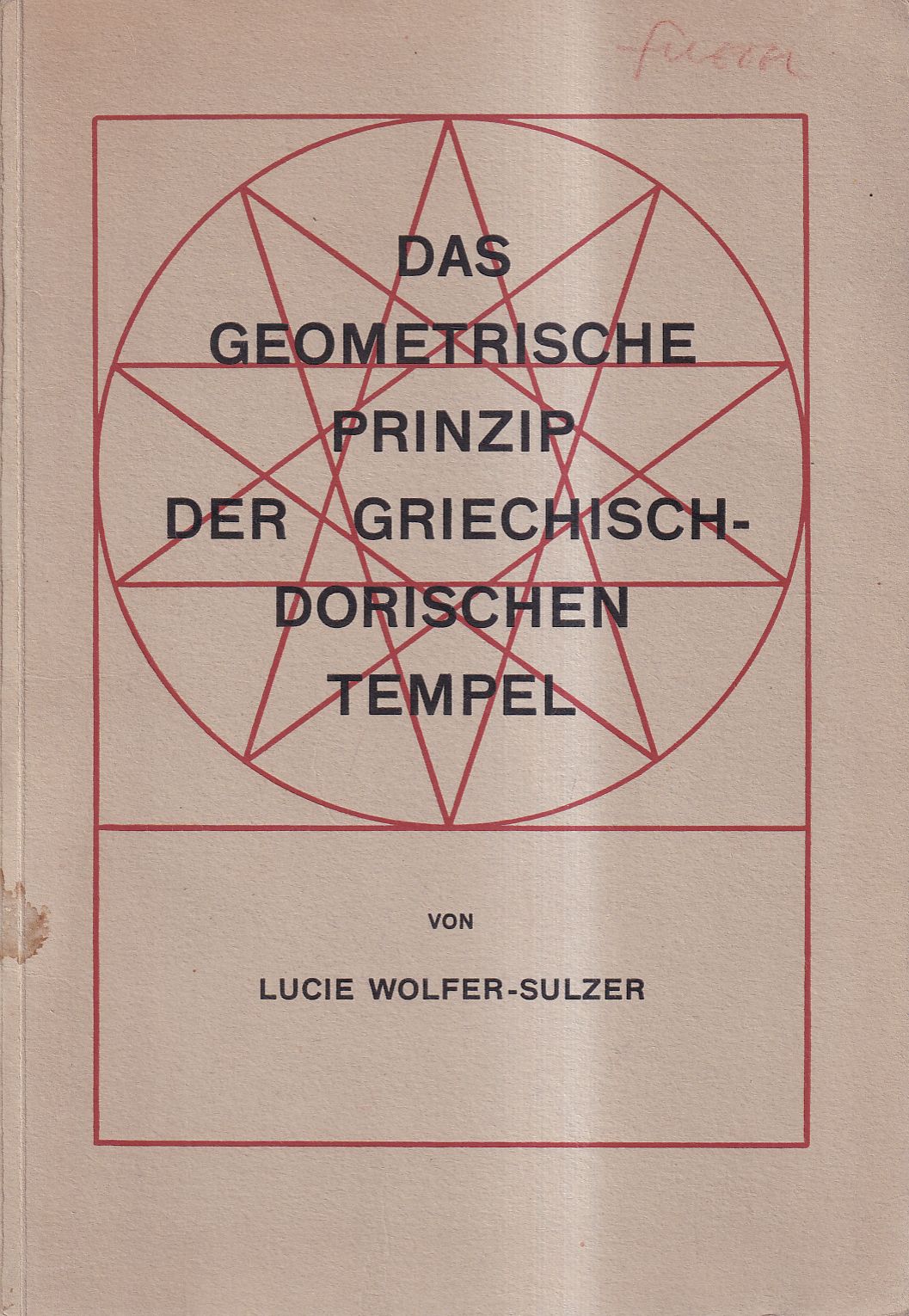Wolfer-Sulzer, Lucie: Das geometrische Prinzip der griechisch-dorischen Tempel. Winterthur: Vogel in Komm. 1939. Gr.-8°. 40 S., 32 Pläne, broschiert (altersgemäss gut erhalten)