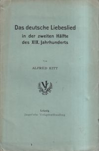 Kitt, Alfred: Das deutsche Liebeslied in der zweiten Hälfte des XIX. Jahrhunderts. Leipzig: Jaeger 1905. 8°. 31 S. Broschiert (altersgemäss gut erhalten)