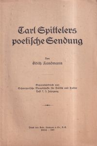 Landmann, Edith: Carl Spittelers poetische Sendung. Zürich: Seemann 1923. 8°. 20 S., geheftet (angestaubt; Gebrauchsspuren) (=Separatabdruck aus: Schweizer Monatshefte, Heft 7, 3. Jahrgang)