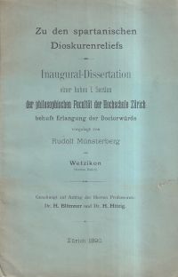 Münsterberg, Rudolf: Zu den spartanischen Dioskurenreliefs. Zürich 1890. Gr.-8°. 39 S., Broschiert (Einband mit leichten Gebrauchsspuren; altersgemäss gut erhalten) (=Dissertation Zürich 1890)