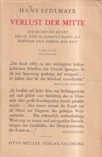 Sedlmayr, Hans: Verlust der Mitte. Die bildende Kunst des 19. und 20. Jahrhunderts als Symptom und Symbol der Zeit. 6. Aufl. Salzburg: Otto Müller 1953. 268 S., 64 Abb. Leinen (Besitzervermerk auf Vorsatz; Bleistiftanstreichungen)