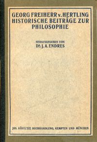 Hertling, Georg von: Historische Beiträge zur Philosophie. Hrsg. von J.A. Endres. Kempten: Kösel [1914]. 8°. 345 S., broschiert (neuer Einband; wenig bestossen; teilweise leicht wasserfleckig)