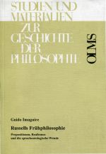 Imaguire, Guido: Russells Frühphilosophie. Propositionen, Realismus und die sprachontologische Wende. Hildesheim: Olms 2001. 8°. VIII, 227 S., broschiert (sehr gut erhalten) (=Studien und Materialien zur Geschichte der Philosophie ; Bd. 58) In diesem Buch geht es um die Entstehung und die Anfänge der analytischen Philosophie, konkretisiert in der Person des englischen Philosophen, Logikers und Mathematikers Bertrand Russell. Alle wichtigen Themen seiner Frühphilosophie werden historisch und kritisch-systematisch behandelt.