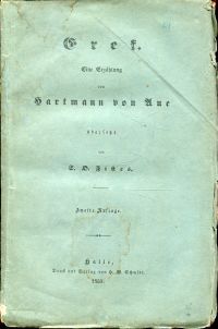 Hartmann von Aue: Erek. eine Erzählung. Übersetzt von S. O. Fistes 2. Aufl. Halle: H. W. Schmidt 1855. 8°. IX, 237 S., broschiert (stockfleckig, angestaubt und befleckt; Randläsuren) Text in Fraktur.