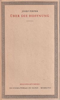 Pieper, Josef: Über die Hoffnung. 4. Aufl. Olten: Summa 1948. 8°. 100 S. Pappband (Besitzervermerk auf Vorsatz; Ex Libris auf Innendeckel; Papier altersbedingt leicht gebräunt; altersgemäss gut erhalten) (=Hegner-Bücherei)